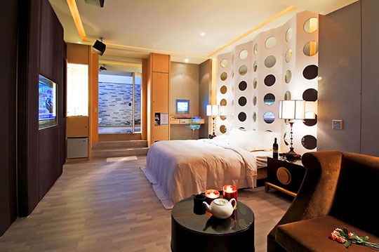 採用與星級飯店同級之「美翠絲名床」,全館木造地板,DVD播放器、劇院型環繞音響、雙人按摩浴缸等頂級設施,舒緩平日工作緊張的情緒,讓身心靈充分休息,擁有奢華浪漫的渡假體驗!