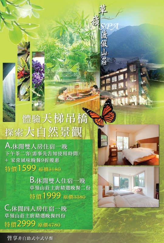 草嶺山莊創立於民國六十四年(西元1975年),歷經二十餘年的成長淬練,並結合『涵碧樓渡假飯店』Know How 經營理念,設備、管理、服務皆邁向高品質、高價值的水準,是新世紀精緻優質的休閒旅館。