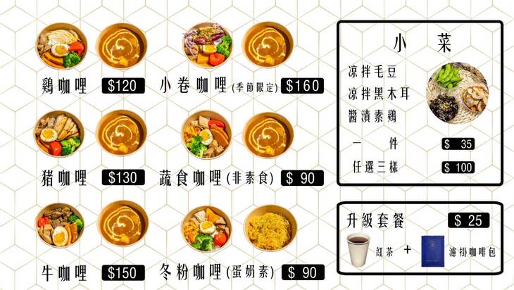 中午總是想不到要吃什麼嗎?不妨來吃吃看這間料多味美的「咖哩盒食」吧!相較於一般咖哩貴鬆鬆的價格,這間店的價格較親民,用料卻十分大方,份量也非常足夠,無論什麼時候吃都讓人感到心滿意足!店家主打南洋咖哩,不同於甜甜的日式咖哩,南洋咖哩的口感更加辛香濃郁,每一份咖哩飯都是咖哩醬跟菜飯盒分開,蔬菜清甜、醬汁濃稠,連肉類熟度都烹調得完美,吃起來沒有腥味,反而帶出肉本身的甜味和鮮氣,軟嫩又多汁,滿滿的香氣讓人感到幸福無比!一個人吃也能吃得很豐盛唷!