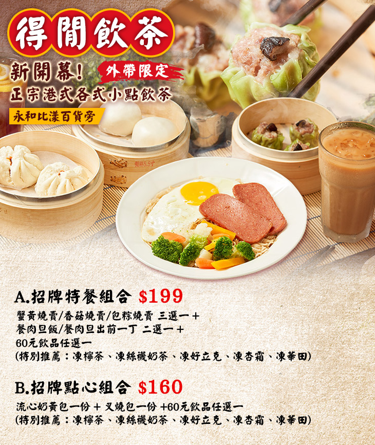 透過嚴選食材、用心烹調,共譜成一道又一道色香味俱全的港式好味,將帶領您用舌尖暢遊香港、用味蕾體會在地的人文風情,想要去香港旅遊,但因為疫情無法圓夢,又或者難以從繁忙的生活中抽身嗎?不妨先來【得閒飲茶】點一桌滿滿的港式小點及佳餚,帶回家大快朵頤~保證讓您猶如置身香港!現正推出超高CP值的套餐選擇,熱愛港式飲茶的您快來嚐鮮吧!
