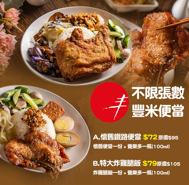 懷舊排骨便當、鮮香味美的炸雞腿飯…料多實在、風味絕佳!經過用心調配的菜肉比例與種類,讓您吃得健康且心滿意足。此外,恰到好處的調味,整體不會過鹹,盡情大快朵頤,也不會覺得膩口~滿足味蕾的渴望!肚子咕嚕咕嚕叫了嗎?不妨來【豐米便當(南竹店)】吧!