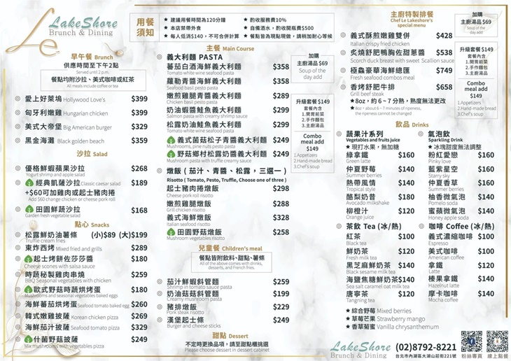 網美打卡景點再+1!近圓覺步道、大溝溪清水生態公園!Le Lakeshore 是一間走高質感路線的歐風庭園餐廳,舒適典雅的用餐環境,以灰、白、深淺木質色為主色調,搭配翠綠植栽及歐式風格擺件點綴,營造出一種優美放鬆的感覺,也讓人充分感受到餐廳主人對自家品牌的重視與用心。店內提供多元精緻美味的餐點,坐在窗邊座位,享受愜意的街頭景色,點一份餐食,搭配一杯特調茶飲,便可以享受到與平日截然不同的美妙時光,誠摯歡迎您的到來!♥