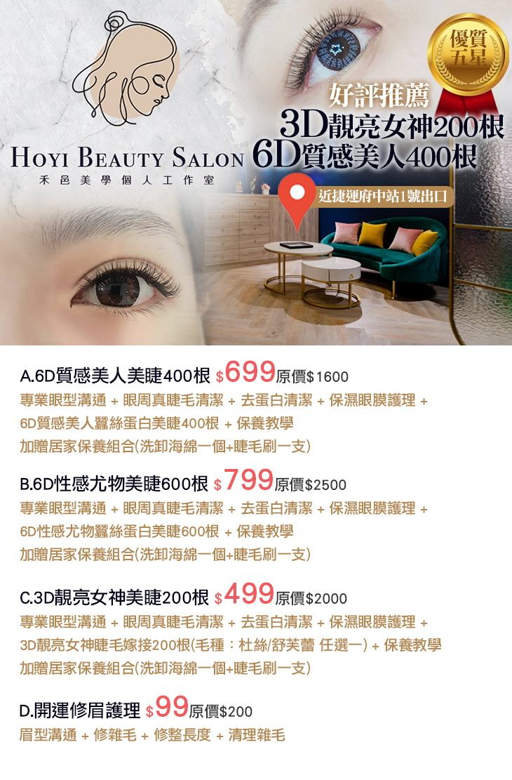時尚雅致的裝潢,流露出自然溫馨的氣氛。專業的美容師擁有細膩的手藝、親切的態度,讓您毫無壓力、放鬆安心!嚴選接睫產品,仔細為來店客人嫁接護理,讓您輕鬆享受變美的過程,成果保證自然美麗!想要獲得更好的自己嗎?【禾邑美睫】隨時等您來唷!