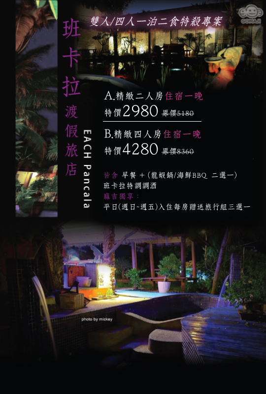 【墾丁-班卡拉渡假旅店】感謝麻吉們熱烈搶購,已全數賣光光。