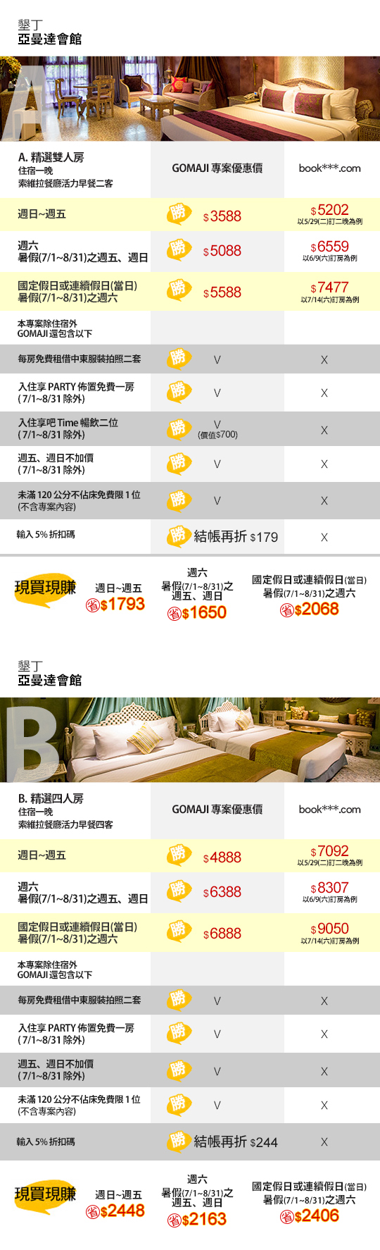 ☞假日入住超激省,比知名訂房網站省一兩千!