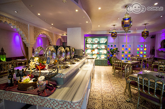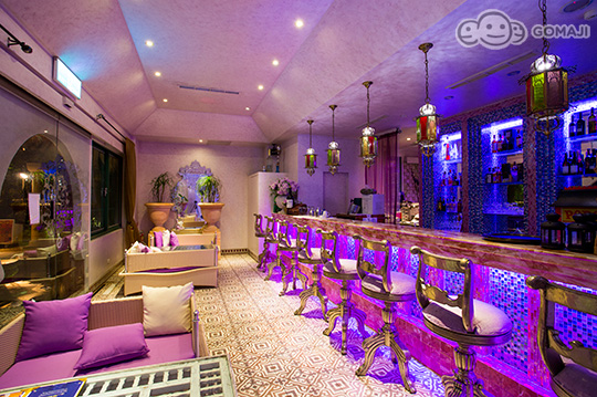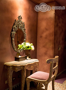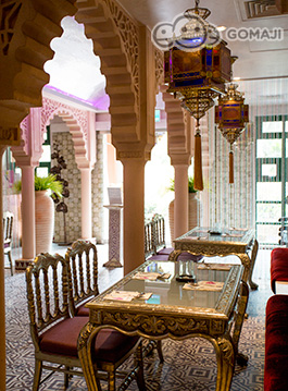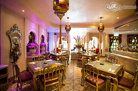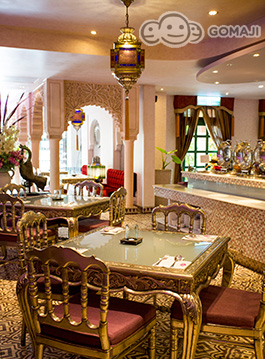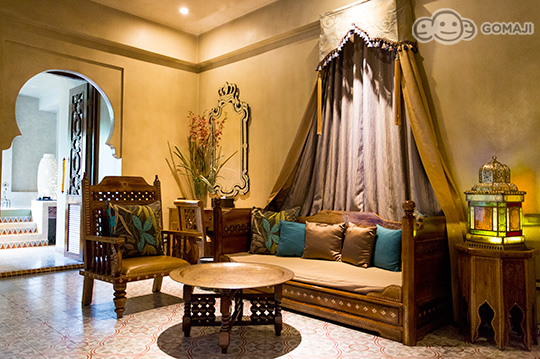 索維拉城 Essaouira 是摩洛哥西部極富盛名的旅遊重鎮,亞曼達附設餐廳以索維拉城命名之,全室浪漫淡紫色牆面,搭配銀箔包覆雕花傢俱,以淡淡的法式風情,混搭摩洛哥皇室奢華。