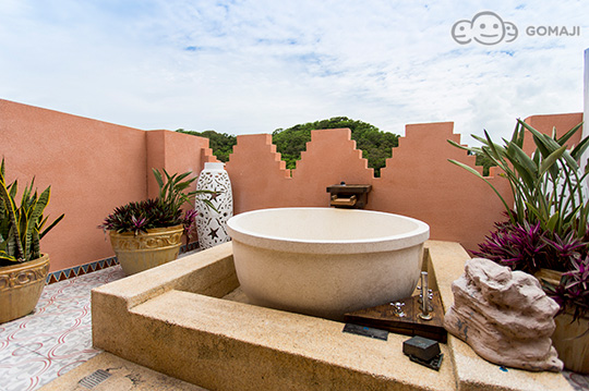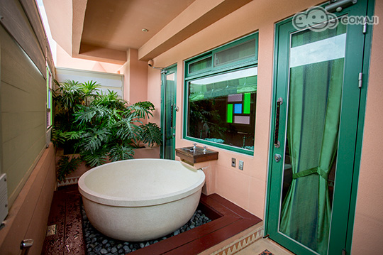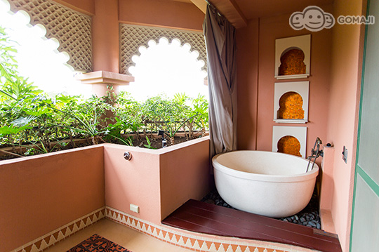 擁有戶外大型水磨石浴缸,當夕陽漸漸西下,美麗的橘紅暈染了天邊的雲彩,浪漫情景不言可喻。夜晚更是繁星點點,天空中顆顆晶亮的鑽石,是旅行中最珍貴的紀念。