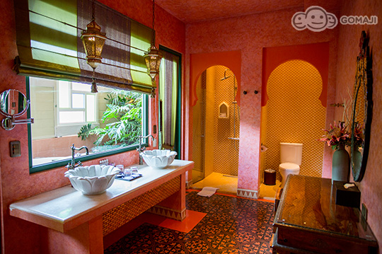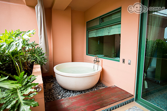 戶外陽台、大型水磨石浴缸、摩洛哥銅盤桌椅休憩區、漢白玉大理石手工雕刻雙洗手檯和TOTO衛浴設備,均是為了顧客能夠徹底洗盡疲憊,享受渡假的悠閒愜意。