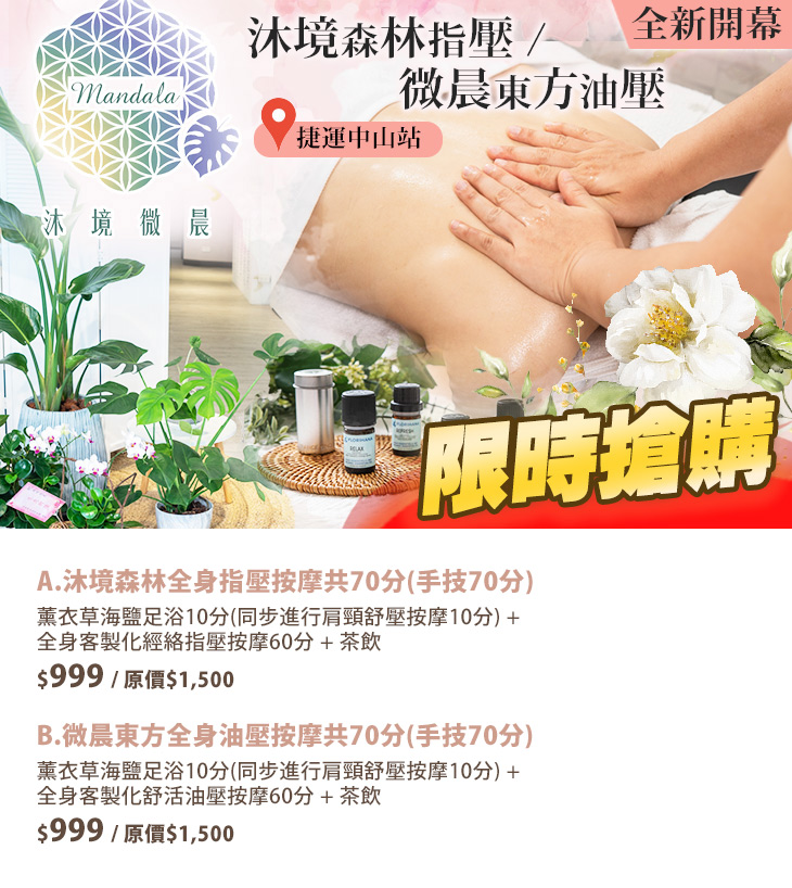 A.沐境森林全身指壓按摩共70分(手技70分)