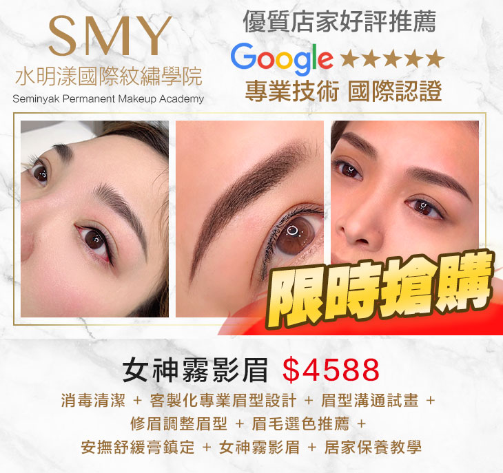 紋繡老師嚴選品質優質的染劑,為您仔細紋繡上自然不死板的美眉,不僅將〝眉毛毀整臉〞的機率降為0,也為您省下之後化妝時勾勒眉毛的時間,輕抹底妝、唇彩,就能在短時間內打造精緻妝感,再也不用為了畫眉毛而煩惱,就算素顏,也能自信出門!是無眉道人、手殘黨的最佳福音!