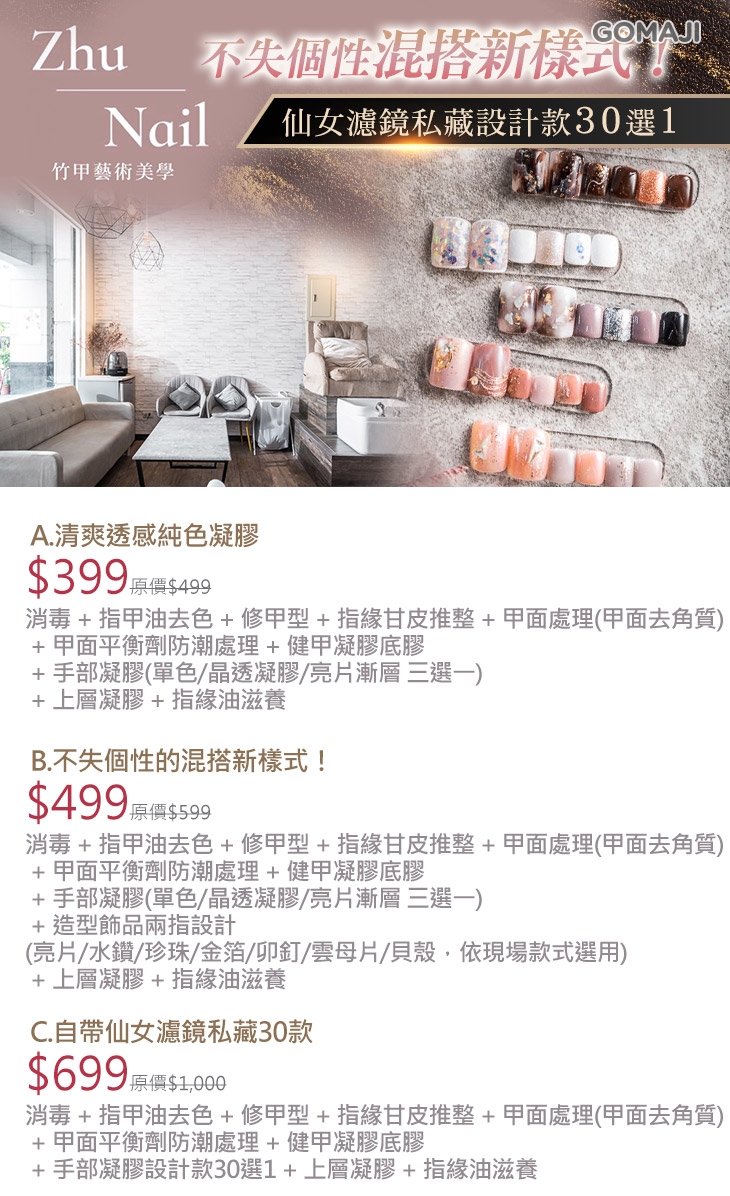 仙女也可以很好當!我們只需打理好服裝的穿搭、有效的妝感,美甲的部分就交由專業的來~為了能夠襯托您的美貌,特別推出30款的風格任您挑選,可愛、帥氣、艷麗,每一款都好看得令人心動不已~在指甲換完漂亮衣裳的瞬間,自信的高光時刻將再度降臨,無論走到哪裡,都會是處於氣場全開、魅力爆棚的理想狀態~仙女們,立即預約起來!