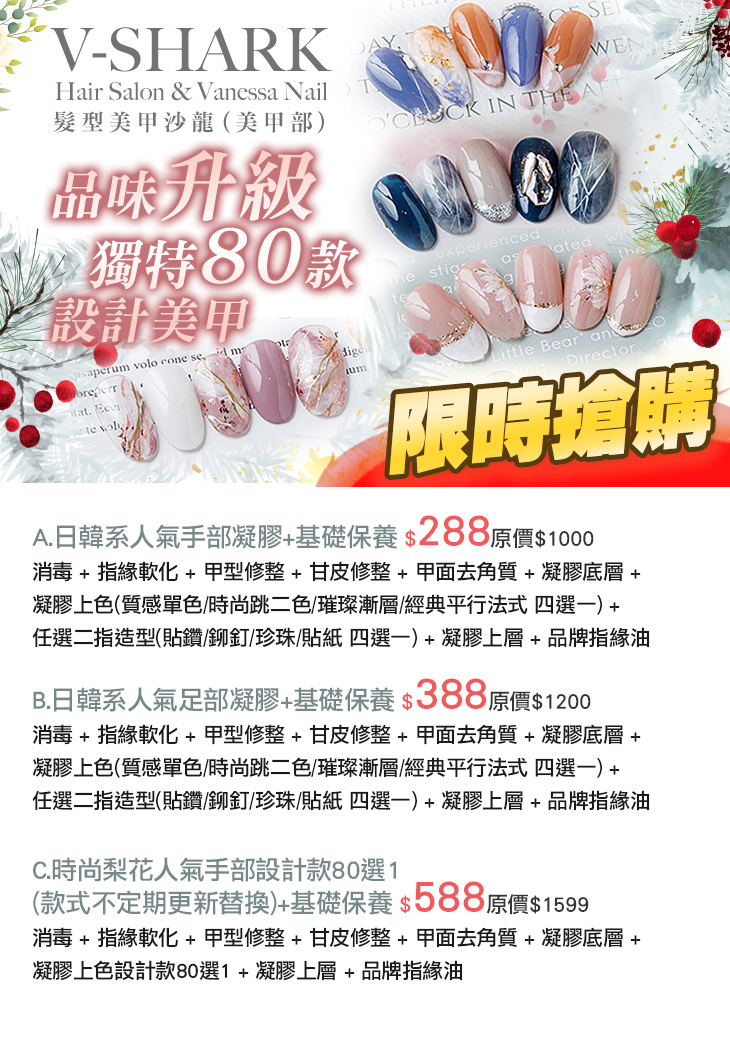 【V-SHARK Hair Salon & Vanessa Nail髮型美甲沙龍(美甲部)】感謝麻吉們熱烈搶購,已全數賣光光。