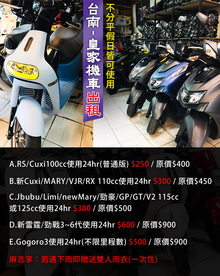 台南- 皇家機車出租