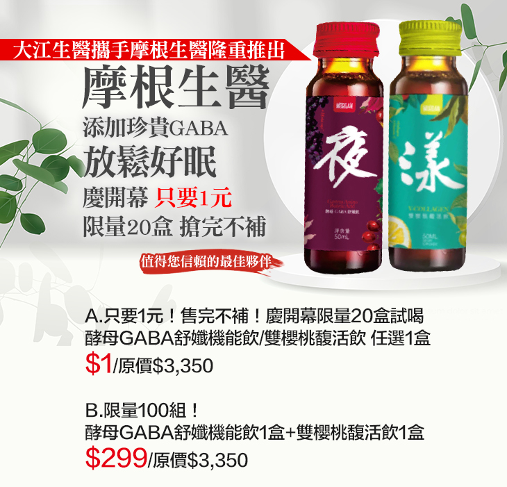各大網紅激推!您內外保養的最佳夥伴【摩根生醫】,重磅登陸GOMAJI!為您帶來口碑滿滿、人氣爆款的保養品、機能飲…等,讓您的日常保養事半功倍,不論是口服還是外用都有,給予您全方位的保養計畫!