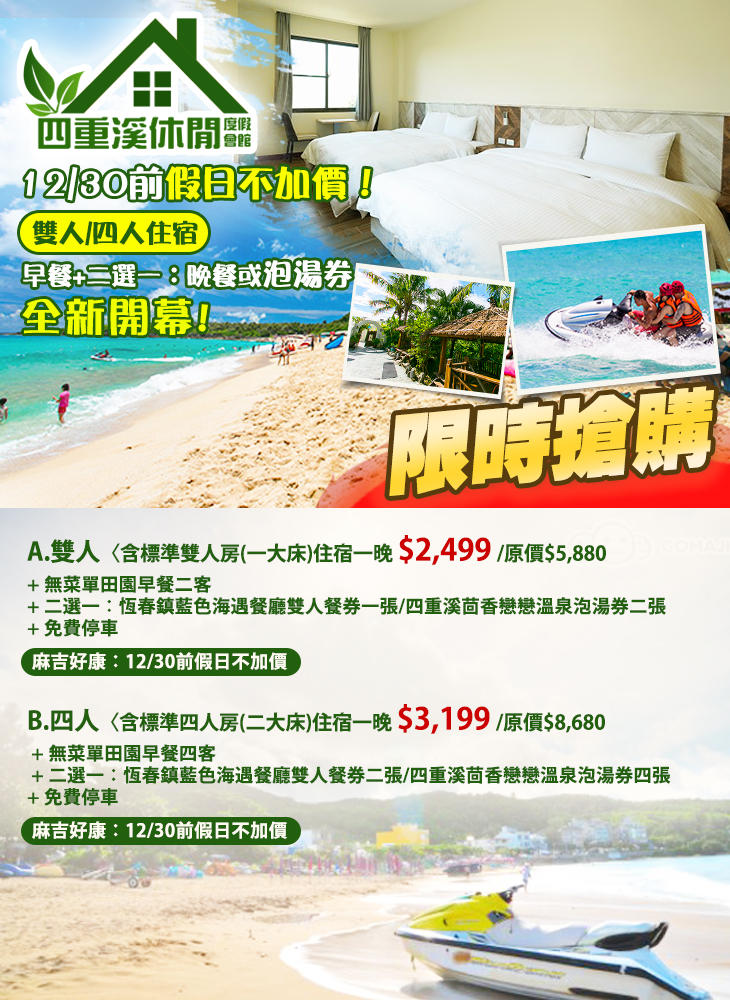 ★ 12/30前假日不加價!全新開幕四重溪度假民宿,手刀搶房趁現在!