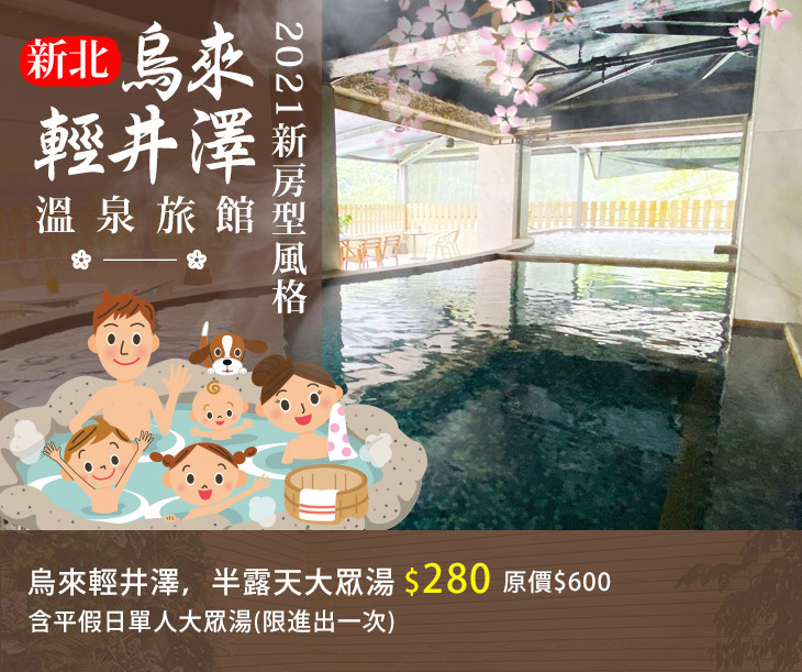 想暫時遠離都市的塵囂及紛擾的人群嗎?還在籌備要去哪裡旅行嗎?渴望享受自然的明媚風光,卻又不想舟車勞頓嗎?來以溫泉、瀑布聞名的烏來,將會是您最好的選擇!【新北-烏來輕井澤溫泉旅館】提供一隅寧靜優美、不受干擾的休憩空間,讓優質純淨的溫泉滋潤肌膚,釋放您平時所累積的緊繃與壓力,放慢步伐、沉澱思緒,為平凡的生活再次燃起火熱雀躍的心!
