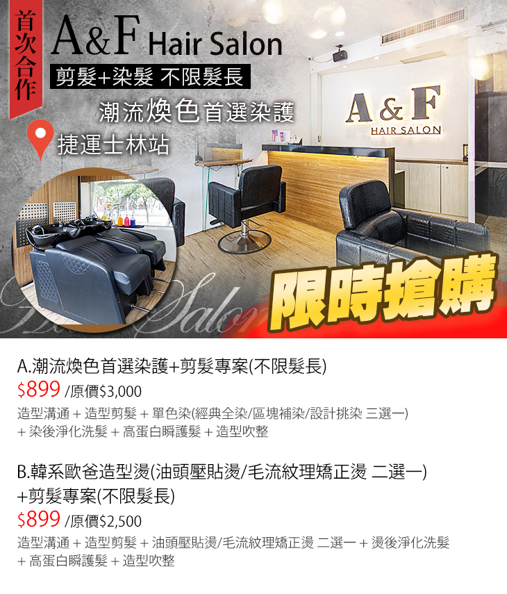 【A&F Hair Salon(士林店)】感謝麻吉們熱烈搶購,已全數賣光光。