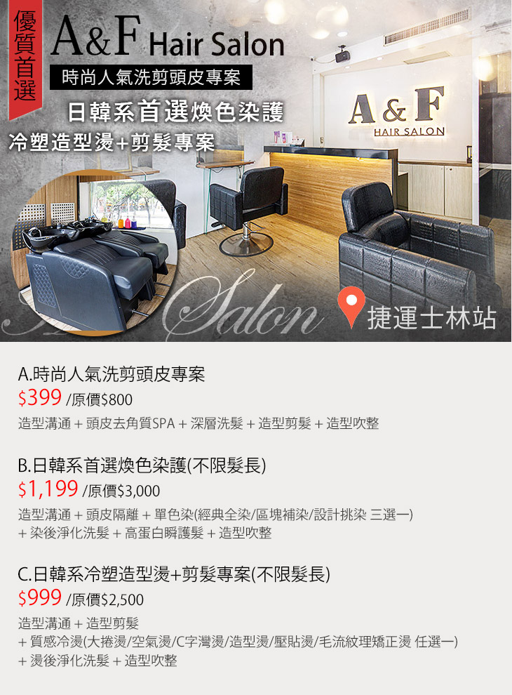 【A&F Hair Salon(士林店)】感謝麻吉們熱烈搶購,已全數賣光光。