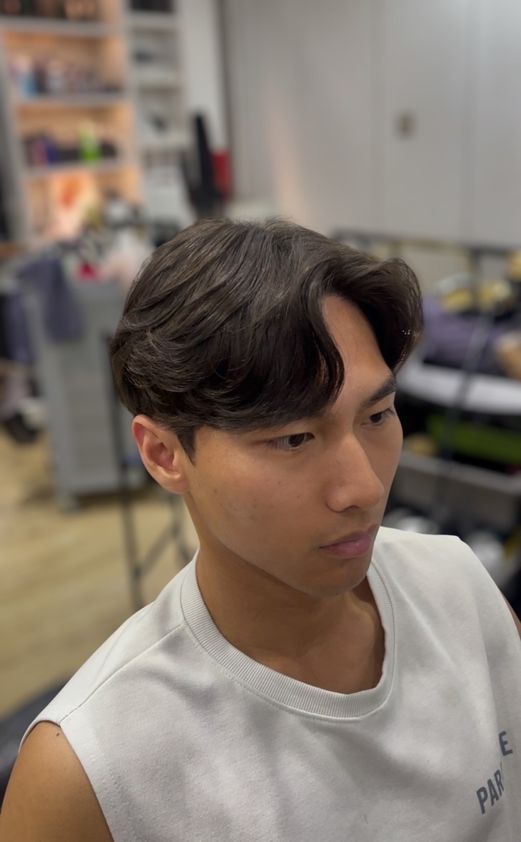 〈髮型溝通 + 設計造型剪裁 + 造型燙髮(男士燙髮/慵懶捲燙/髮尾C灣燙 3選一) + 燙後洗髮 + 燙後基礎順護 + 造型吹整〉