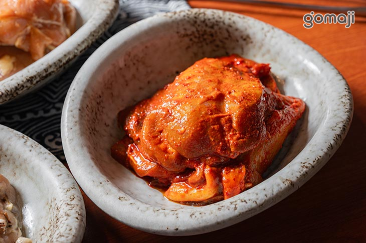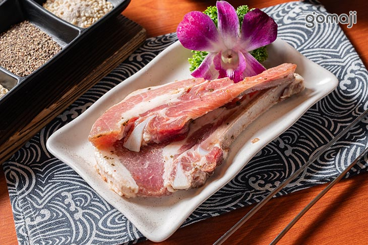 韓式辣味厚五花的魅力在於那種香辣與油香同時爆發的快感。切得厚實的豬五花在烤網上滋滋作響,表面金黃微脆,咬下去時能感受到外層的香酥與內層的柔嫩多汁形成鮮明對比。韓式辣味帶著明顯刺激度,但不會過頭,反而越吃越上癮。油脂香在辣味的拉提下更顯飽滿,是那種配飯、配酒都超級搭的重口味選擇。