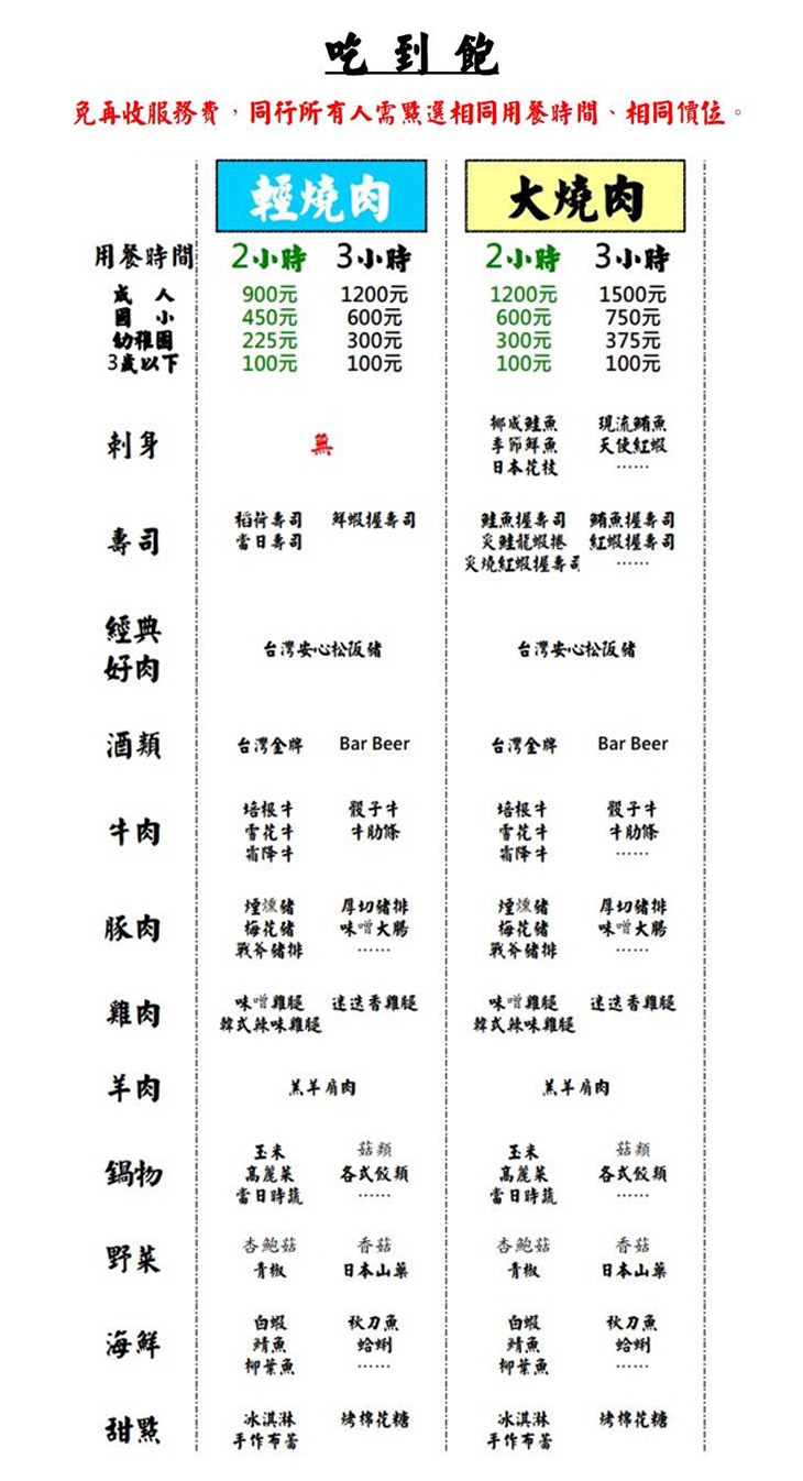 A.輕燒肉2小時每人吃到飽