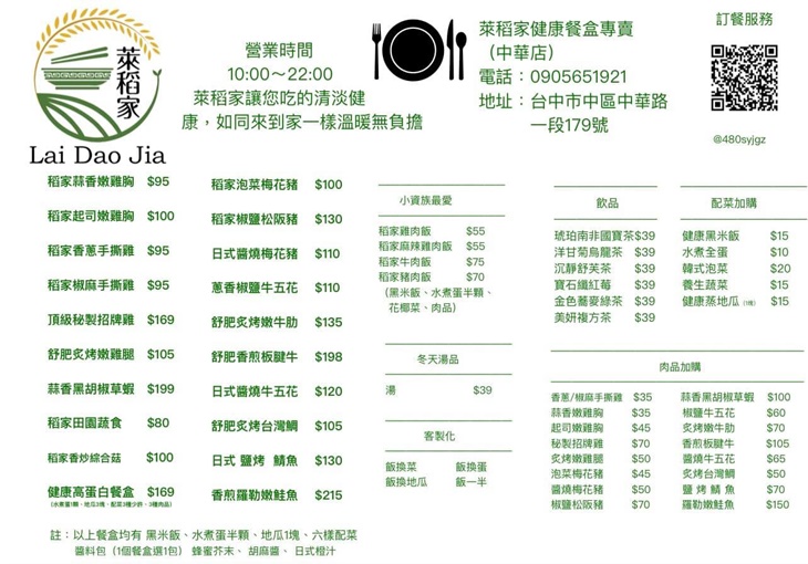 現代人生活繁忙,人們幾乎以外食為主,營養較不均衡,除了口味較油膩之外,每日攝取的蔬菜種類更是遠遠不足,為了大家的身體健康著想,這間位在中華夜市內的「萊稻家健康餐盒專賣店」,絕對是您必須收藏的好店家!「萊稻家」專賣健康美味的餐盒,提供多種新鮮蔬菜以及營養豐富的黑米飯,以少油少鹽的烹調方式,來呈現食材的天然美味,品嚐起來不僅對身體零負擔,更是讓風味完美,達成好吃又營養的夢想!也滿足您一餐的營養需求!