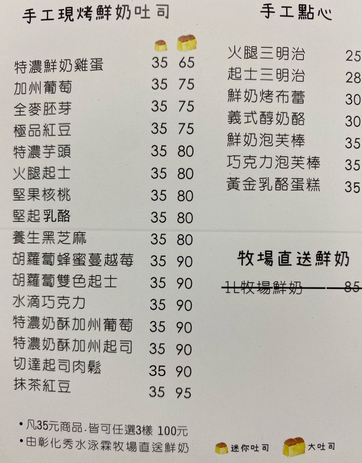 純手工製作的風味吐司,堅持使用品質新鮮、上等的原物料烘焙,現烤的美味,每到出爐時間,便引來許多饕客。店家也有提供國產羊乳製作的羊奶吐司,包含葡萄羊奶吐司、紅豆羊奶吐司、芋頭羊奶吐司及黑芝麻羊奶吐司等口味,柔軟且帶有韌性的麵包體,蘊含精湛的手藝,吃得到店家滿滿的用心,和一般坊間麵包店就是很不一樣!