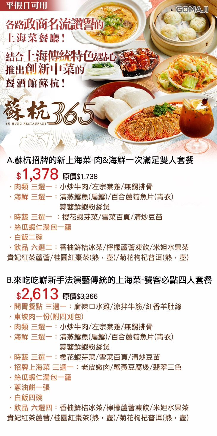 【蘇杭365 上海餐酒館】感謝麻吉們熱烈搶購,已全數賣光光。