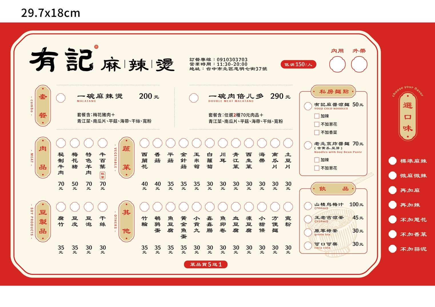 為了呈現最地道的北京口味,我們真的很努力,反覆測試各種辣椒、香料、麻醬,從麻辣湯底、芝麻醬、辣椒醬、麻椒油,都是自家研發的秘方,不用市面販售的調料,絕對是正宗的老北京口味,要求完美、絕不將就,致力於帶給味蕾富饒層次的絕妙享受~用餐環境也都是老北京標配,大部分東西都是老闆從北京扛回來的,讓您猶如身置於京劇中的神秘故事,感受北京專屬的古色古香。