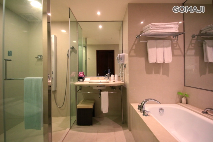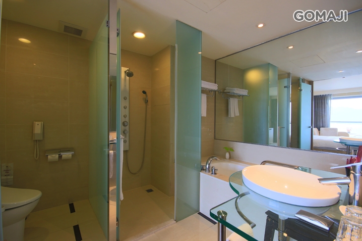 獨立的衛浴設備,附設有SPA水療,讓您在房內就可輕鬆洗滌去一天的疲憊,讓原本緊繃的身體隨著溫熱的水波而流去。