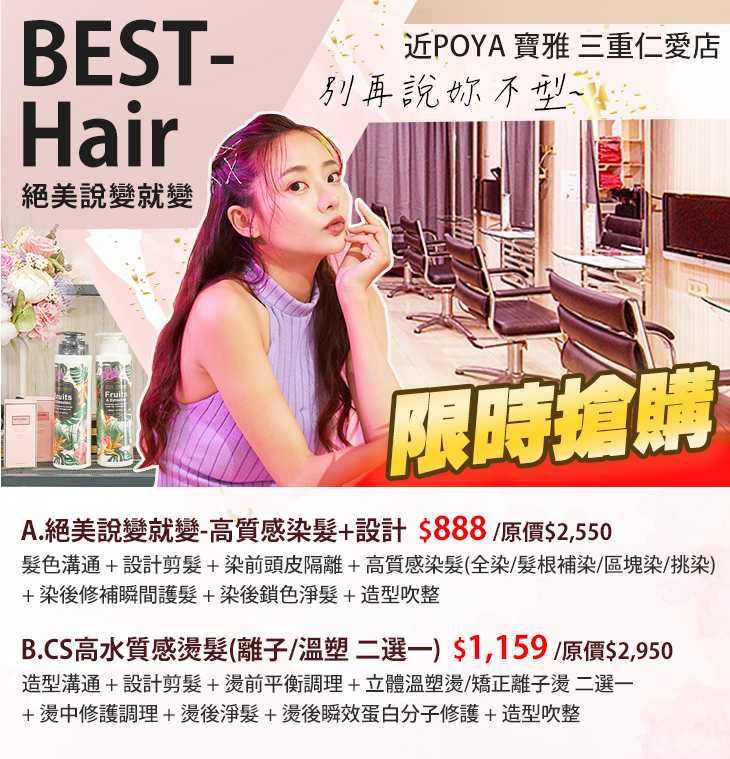 B.CS高水質感燙髮(離子/溫塑 二選一)