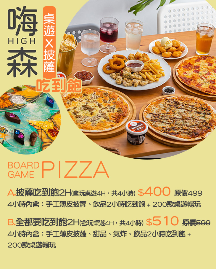 A.披薩吃到飽2H(含玩桌遊4H,共4小時)
