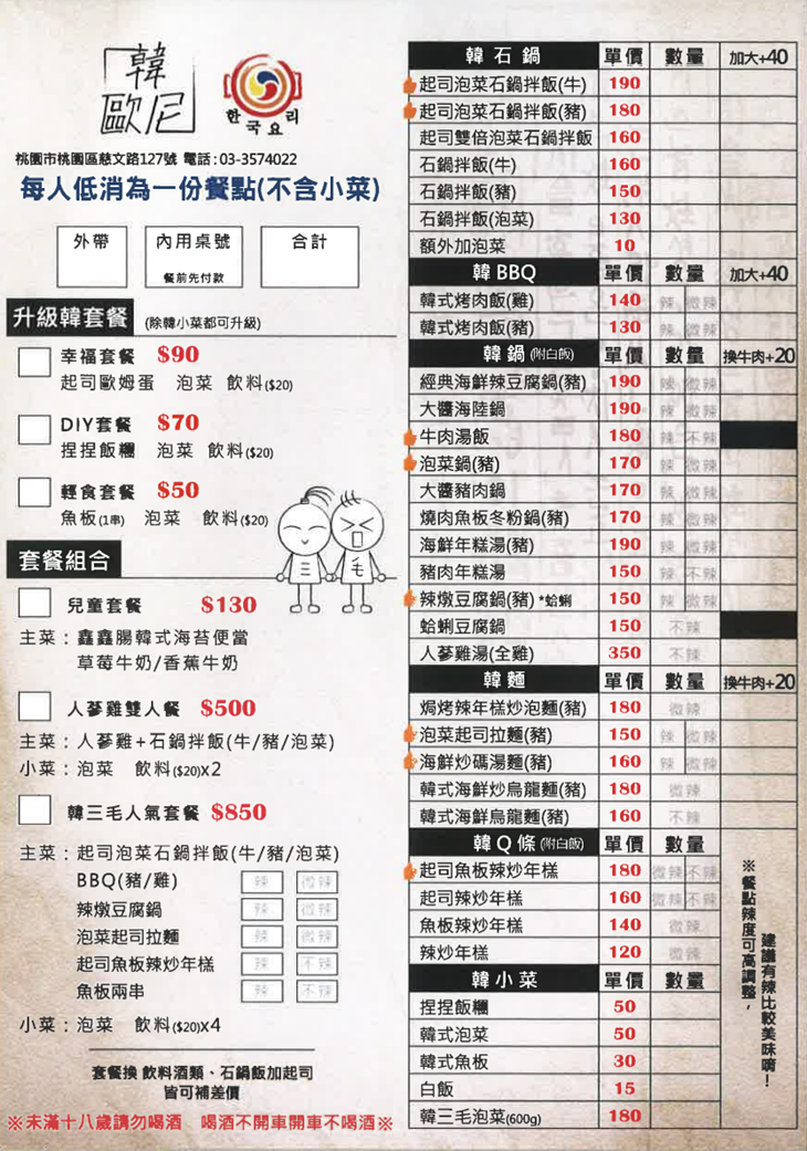 什麼都好想來一點嗎?沒關係~韓三毛人氣套餐已經幫您搭配好,所有不可錯過的韓式美味通通有!內含石鍋拌飯、泡菜起司拉麵、辣炒年糕、魚板、BBQ等,料多味美、香氣四溢,還有經典的韓式小菜與飲料搭配,為您的一餐點綴上更繽紛的美味!
