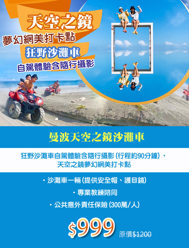 【曼波天空之鏡沙灘車】感謝麻吉們熱烈搶購,已全數賣光光。