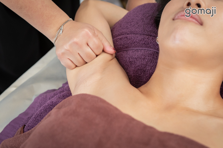 〈更衣 + 乳房活絡暢通開導 + 胸部深層暢通挺立澎潤按摩 + 乳腺暢通 + 副乳集中 + 腋下鬱氣糾結疏通 + 美胸嫩白敷膜(柔嫩白皙) + 課後養生茶飲〉