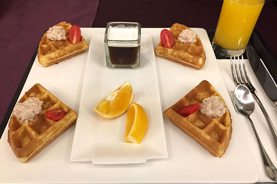 鬆餅 (鮪魚丶巧克力、蜂蜜三擇一)/水果/咖啡凍/飲料 (柳橙汁或冰、熱咖啡、紅茶、洛神花茶、奶茶)