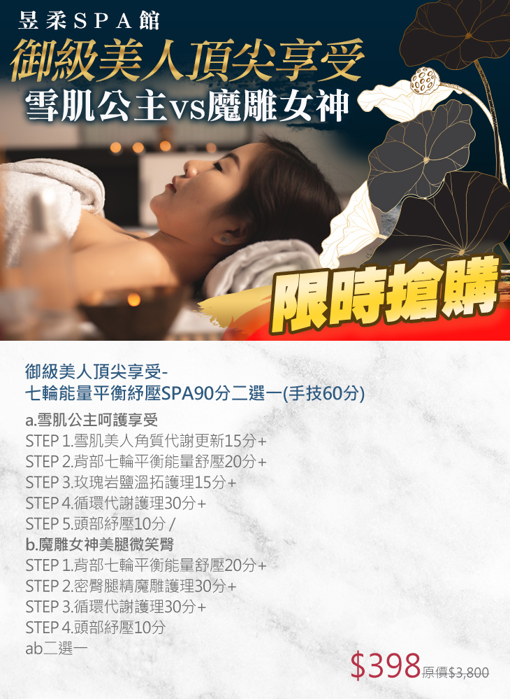 御級美人頂尖享受-七輪能量平衡紓壓SPA90分二選一(手技60分)
