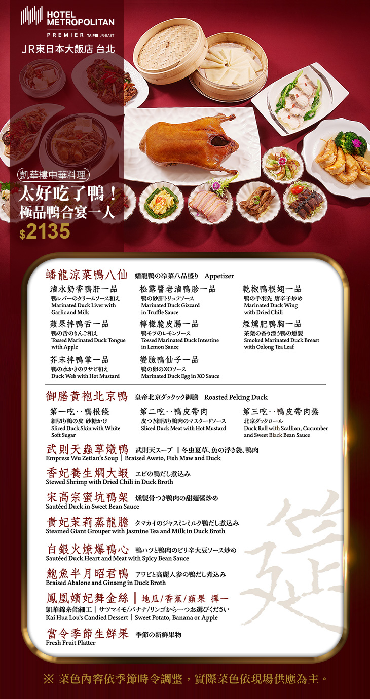 【JR東日本大飯店 台北-凱華樓中華料理】感謝麻吉們熱烈搶購,已全數賣光光。