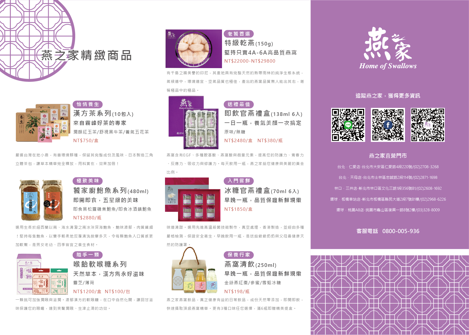 《燕之家》貫徹燕窩專門店之市場定位,以銷售及推廣燕窩產品為主,除傳統燕窩乾貨及即食燕窩產品外,並憑藉無限創意,研製出多元化的燕窩週邊產品,例如:冰糖燕窩、燕窩甜品、燕窩飲品等,實踐「產品多元化、市場大眾化、形象專業化」之經營理念,成功建立別樹一格的燕窩專門店品牌形象。
