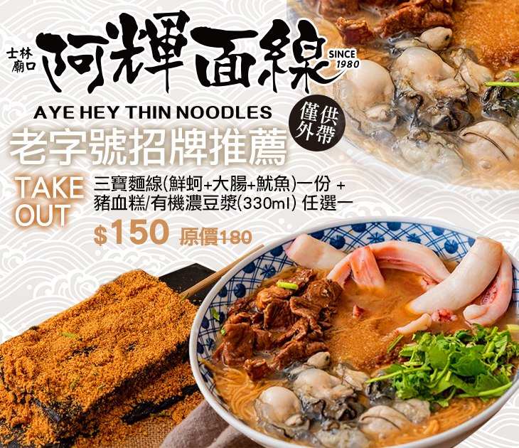 位在捷運士林站1號出口右手邊,傳承多年的好味道,曾獲米其林美食指南推薦,口碑好評的「阿輝麵線」正式上線~專賣記憶中的傳統美食「麵線」,另有販售豬血糕、米糕、肉粽等古早味,物美價廉,色香味俱全。選用新鮮優質的食材,輔以精心調製的配方,將台灣人的口味與小吃之間串起美好的連結,小小一口就能帶來極大滿足,心動的麻吉們,千萬別錯過此次優惠嚐鮮的大好機會囉!