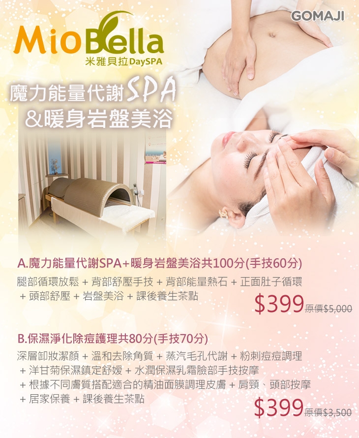 A.魔力能量代謝SPA+暖身岩盤美浴共100分(手技60分)