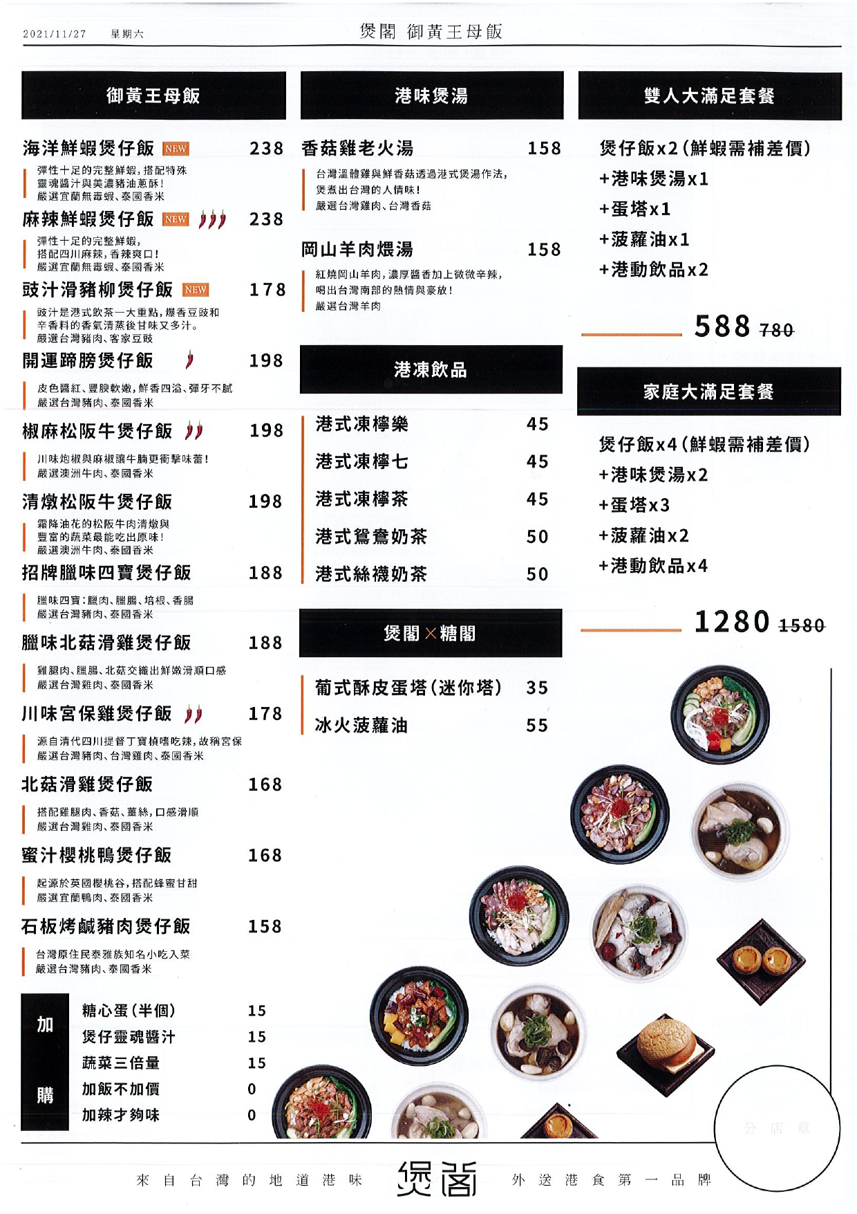 主打料豐味美的港式煲仔飯、煲湯專賣店,店家透過用心挑選的新鮮食材,經由精湛的手藝、獨門的配方,拿捏精準火侯、融入匠心巧思,講究品質、追求完美,幻化成一道又一道色香味俱全的經典佳餚,將食材的精華與特性發揮到極致,期盼給予味蕾至高無上的異國饗宴!