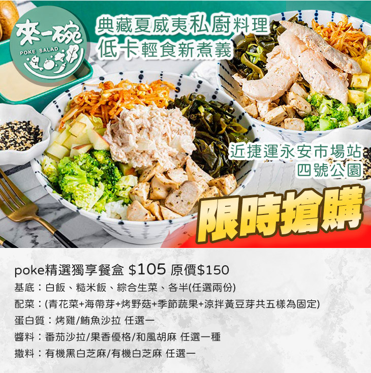【來一碗 POKE 夏威夷私廚健康輕食】感謝麻吉們熱烈搶購,已全數賣光光。