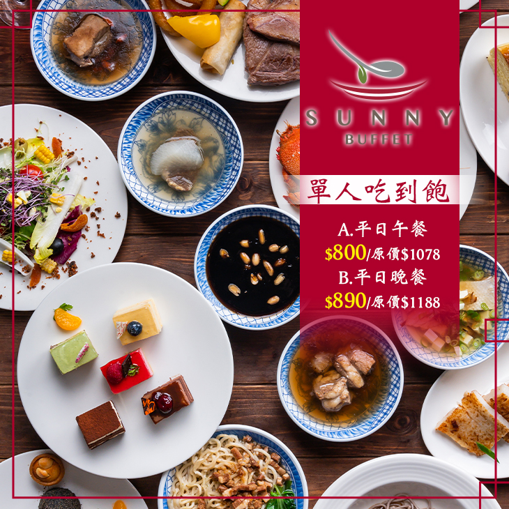 【 SUNNY BUFFET 】堅持挑選最新鮮、頂級的食材,經由主廚精湛廚藝料理,多樣化的菜色供您挑選,自由搭配千變萬化的繽紛餐盤!別出心裁的職人手藝,從「現點現烤區」、化的繽紛餐盤!別出心裁的職人手藝,從「現點現烤區」、「亞洲料理區」,到充滿異國風情的「印度料理區」、「日式「亞洲料理區」,到充滿異國風情的「印度料理區」、「日式料理區」、「西式料理區」、「義式披薩區」…等,還有品味自料理區」、「西式料理區」、「義式披薩區」…等,還有品味自助餐不容助餐不容錯過的「麵食區」、「甜點區」,每一份佳餚都飽含錯過的「麵食區」、「甜點區」,每一份佳餚都飽含心意、精心手作,完全不馬虎,為您展現匠人的堅持、獻上心意、精心手作,完全不馬虎,為您展現匠人的堅持、獻上不可取代的美味不可取代的美味!!