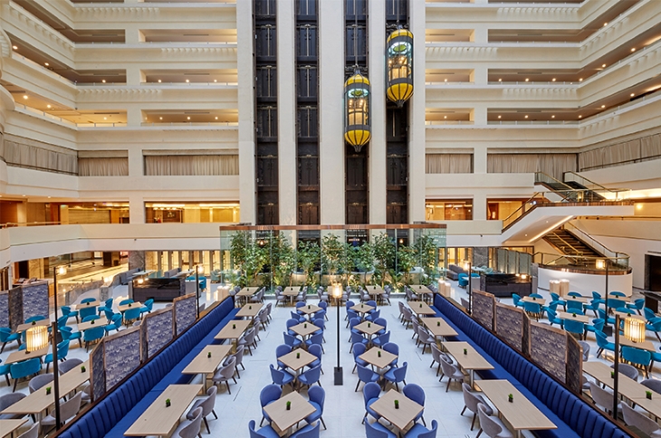位於酒店一樓的【SUNNY BUFFET】,提供選擇豐富的無國界料理,早、中、下午茶及晚餐四個時段的服務,讓您任何時段都可以享用到豪華豐盛的珍味美饌!大片玻璃帷幕善用自然採光,打造與外界一牆之隔的用餐空間,挑高16層樓的設計,讓環境更寬廣,搭配大片綠色植栽點綴,讓您擁有置身在露天咖啡座用餐的體驗!白天感受溫煦陽光灑入,午後欣賞逐漸落日的風景,夜晚則有星空燦爛的浪漫,將整整720坪的超大空間,發揮得淋漓盡致!
