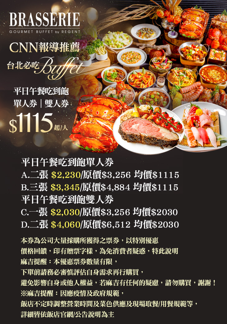 全面提升、重新升級的栢麗廳BRASSERIE,用重新規劃的自助餐檯,反轉您以往對自助Buffet的印象,以新穎的菜色規劃,為老牌Buffet注入全新靈魂。