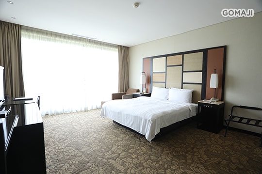 室內裝飾基調清新素雅,白色成為空間色彩的主調。長窗間隔而立,寬大的採光面積,使室內沐浴在日光的暖意之中。擁有冷、熱雙池的獨立湯池,讓您真正享受美湯滋潤!