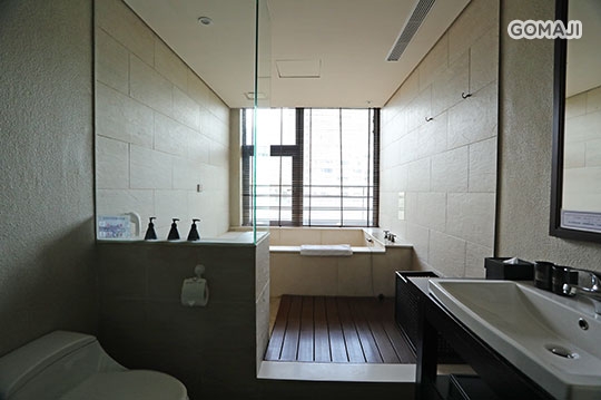 寬敞的空間,由戶外灑入一室暖意的陽光,正試圖打破米色的沉靜。萊姆石正接泉水的洗禮,好為您保存泉質的日月精華。此刻,您或傾臥太妃椅、或步履陽台觀景,讓青綠山巒洗滌視野,盡享渡假的悠閒與愜意!