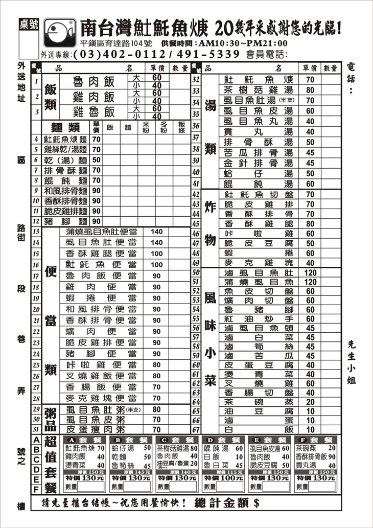 招牌必點!以Q彈涮嘴的油麵為基底,搭配濃醇的美味羹湯共譜而成,最後放上新鮮酥炸的土魠魚點綴其中,簡單調味、完美上桌!陣陣香氣撲鼻而來,瞬間促進食慾,令人垂涎欲滴~細細品味,麵條緊緊吸附羹湯精華,口感水潤滑順~配上外酥內嫩的土魠魚,一口咬下便於唇齒間迸發豐盈的鮮甜肉汁,傳統又道地的經典美味,值得您一嚐再嚐!