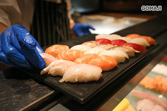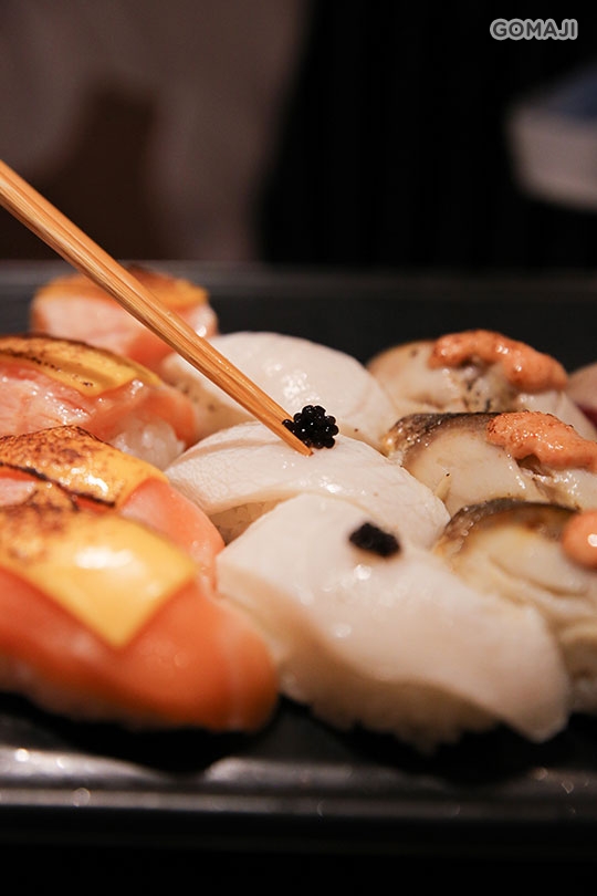 小蔥山蘿蔔等不同口味的芥末醬享用。